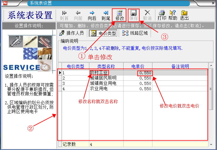 3.修改電價步驟如下。