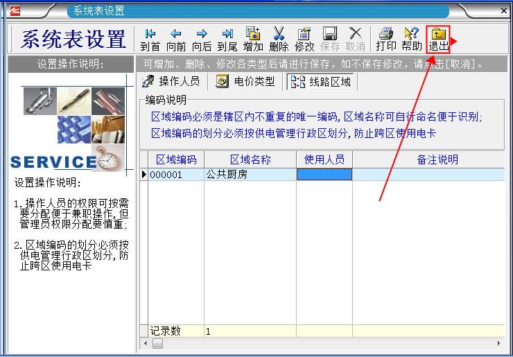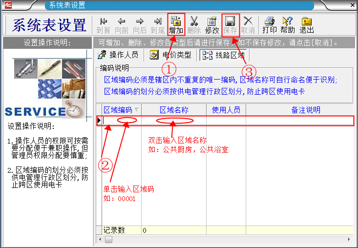 “區域”的意思就是,你想把電表分成幾個區域使用,你就設置幾個區域。如(你有6只電表,想分成ABC三個區域,A區的用戶 不能在BC區使用,B區的用戶不能在AC區使用,C區的用戶不能在AB區使用。  如果想讓所有的用戶在所有的電表上都能使用的話,就1個區域就可以了)。