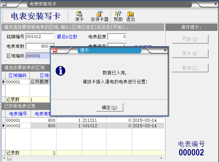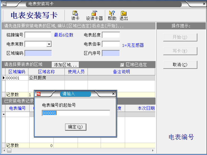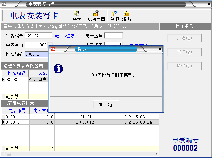 系統設置完成之后,把IC卡插入讀卡器,就進入制作“區域設置卡”。如下圖