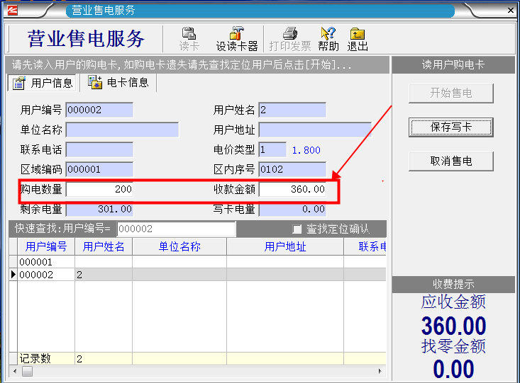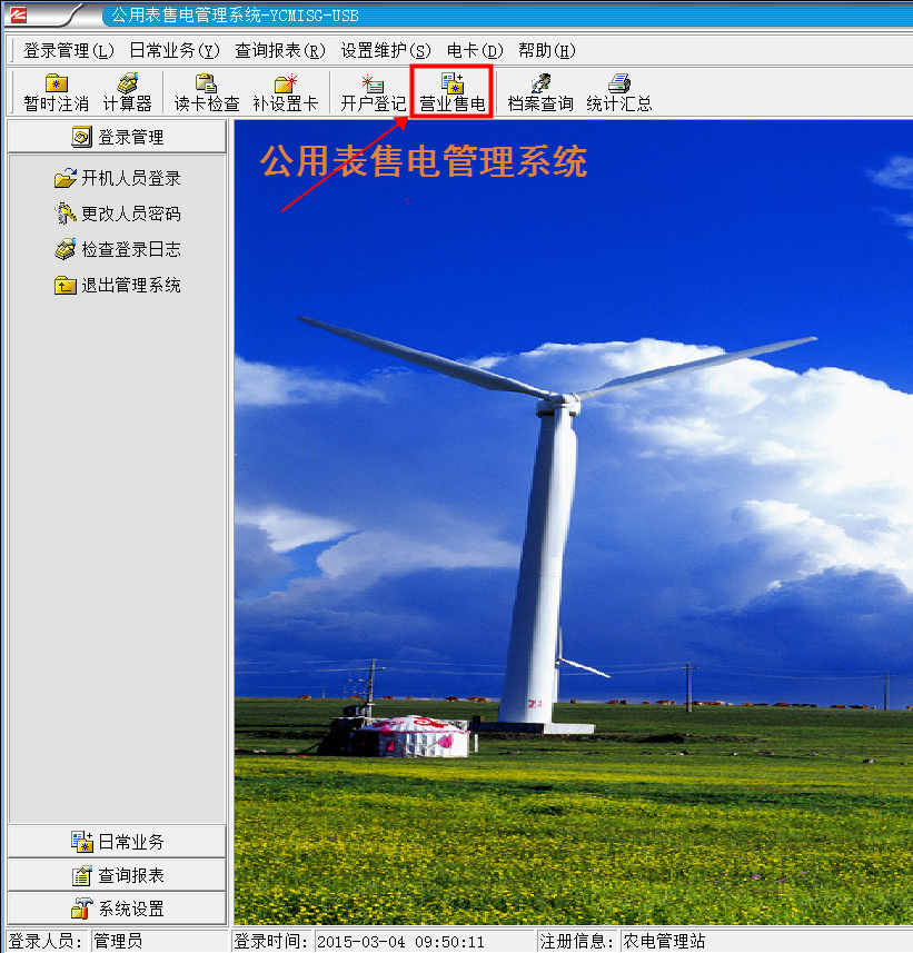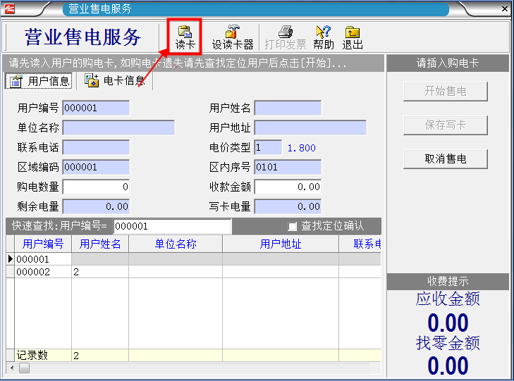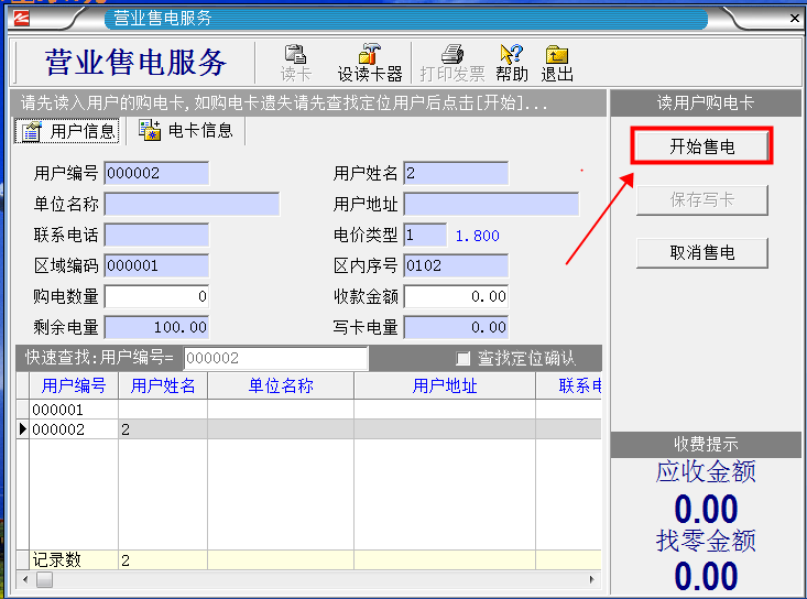 1.首先把用戶購電卡插入讀卡器,然后單擊“營業售電