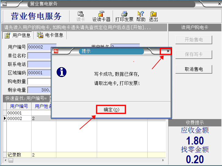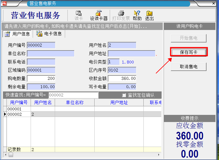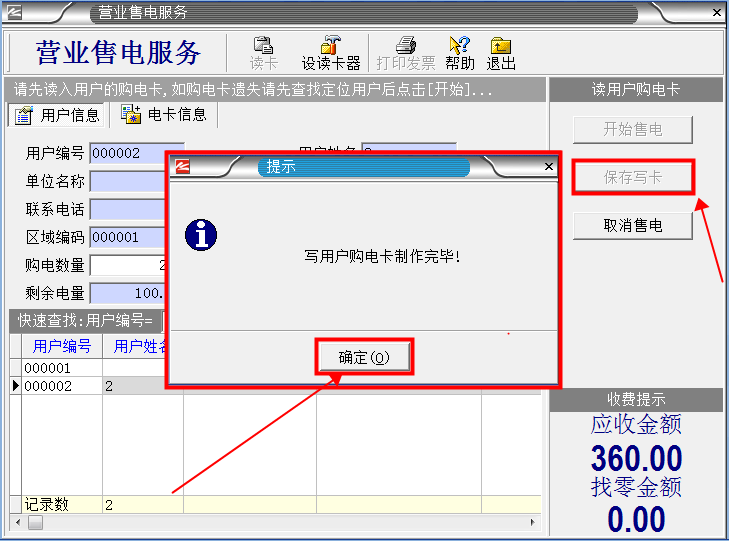 6、最后單擊“保存寫卡”然后單擊“確定”就完成售電了