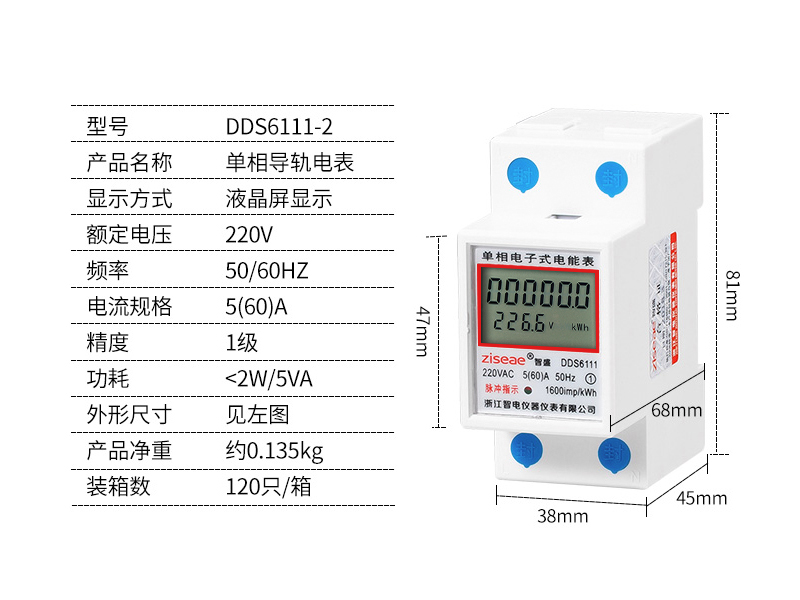 DDS6111-2導軌式電能表是我公司研制開發的一款新型單相電子式電能計量產品。該產品符合GB/T17215.321-2008和IEC62053-21國際標準中1級和2級靜止式交流有功電能表相關技術要求,適用于參比電壓為220/230V,頻率50Hz/60Hz的單相交流有功電能的計量。該產品適應電壓范圍寬、可靠性高、壽命長、精度高、功耗低,并且具有防竊電等功能。其采用導軌式結構設計,體積小、安裝方便,采用標準的35mm導軌安裝接口國際通用。可廣泛應用于城市、農村或工廠企業的單相電能計量和集中式安裝。