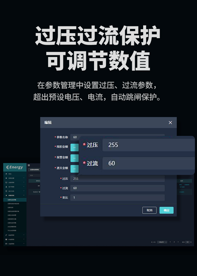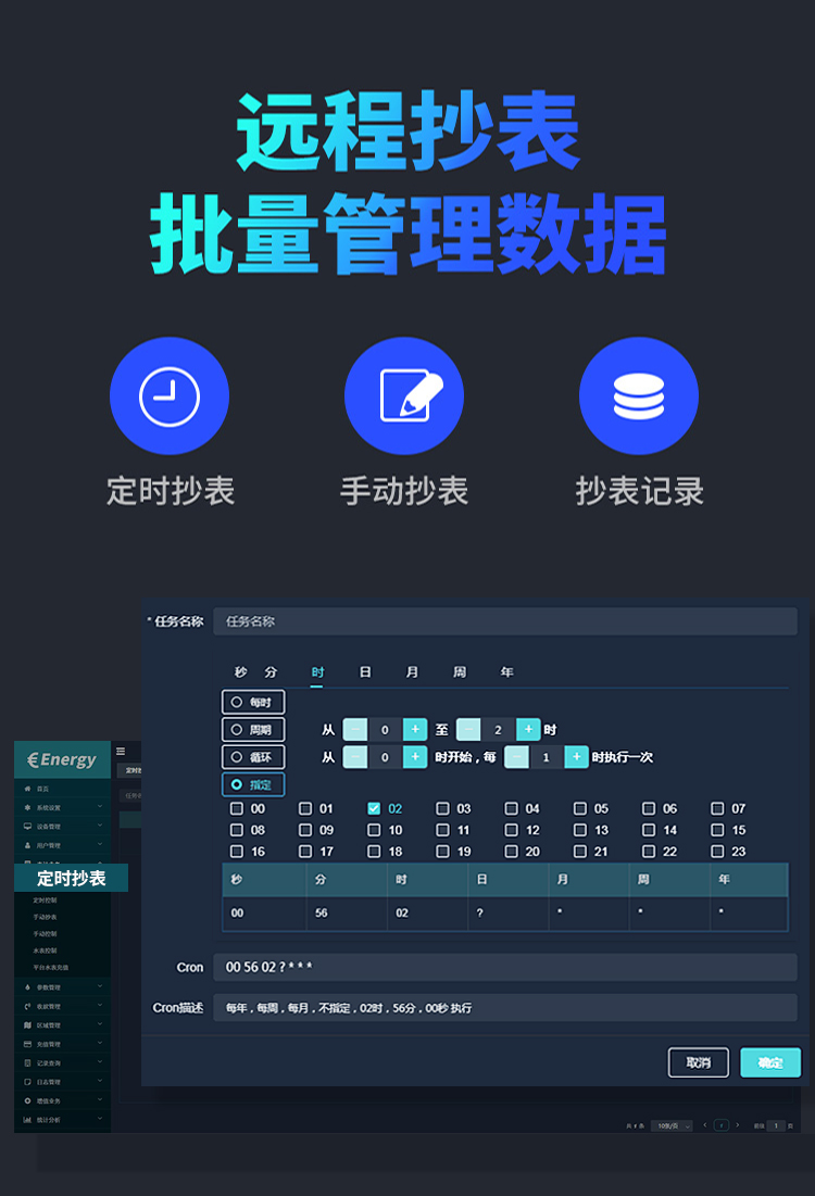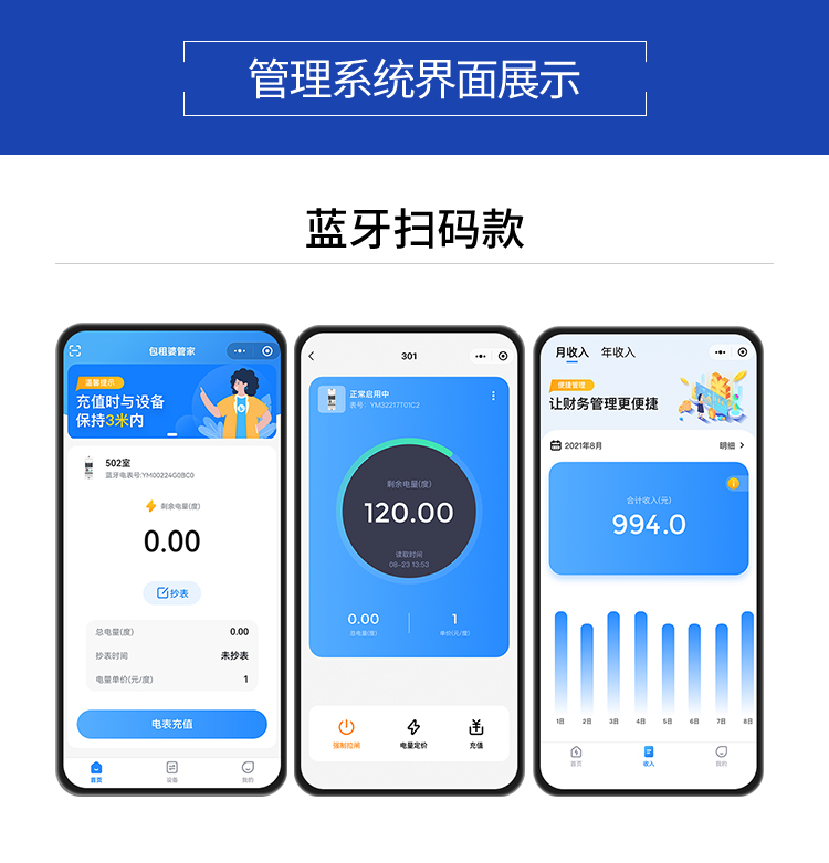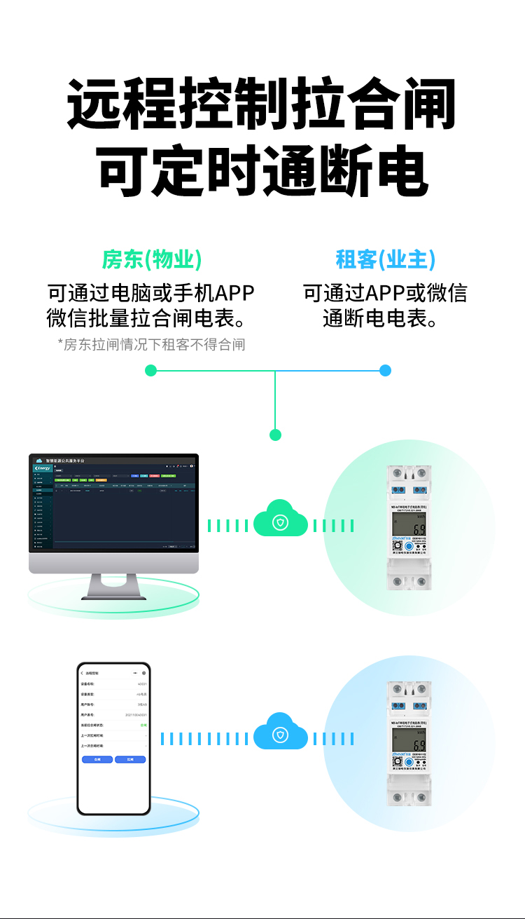 本公司DDSY6111/DDZY6111遠程智能電表與本公司遠程抄表系統和手機APP配套使用,遠程抄表管理系統具有實時抄表、定時抄表外,還提供了設備管理功能,如告警、余額短信通知、遠程充值、手機抄表、手機查詢、手機充值、預付費、后付費、自助充值機充值、遠程拉合閘、各種查詢報表、統計報表下載等功能。