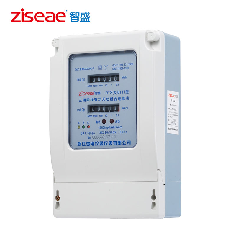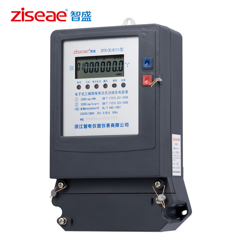 DTS(X)6111、DSS(X)6111型三相電子式有功無功組合電能表(以下簡稱電能表),是為了適應電網改造設計開發的有功、無功組合式電能表。它具有較高的準確度和可行性。產品制造標準符合GB/T17215.321-2008《1級和2級靜止式交流有功電能表》、GB/T17215.323-2008、DL/T614-1997《多功能電能表》、DL/T645-1997《多功能電能表通信規約》等電力行業標準對三相靜止式電能表全部技術要求,是對需要進行無功電量考核的企業、變電站或電廠理想的選擇,亦適合輸配電或配網自動化用表。本產品可供計量參比頻率為50Hz電網中的三相交流有功和無功電能,并能進行正、反向電能計量和紅外及RS485通訊功能。其特點是精度高、可靠性好、寬負荷、低功耗、誤差曲線平直、抗干擾能力強。