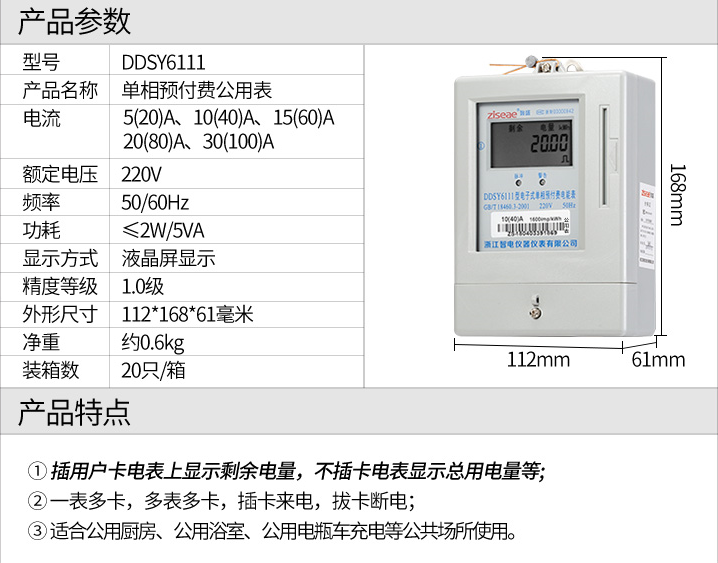 DDSY6111型電子式單相插卡預付費電表,采用集成電路設計,全自動表面貼裝(SMT)生產工藝制造。電能表的線路設計和元器件選擇以較大的環(huán)境允差為依據,可保證整機穩(wěn)定工作,精度高、高過載、低功耗,可靠性能高。內置磁保持繼電器。通過控制繼電器實現(xiàn)控制負載的通與斷,實現(xiàn)督促用戶先買電后用電的功能。