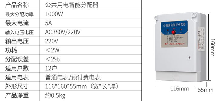 型號:JL-12-A 2-12戶公共用電智能分配器