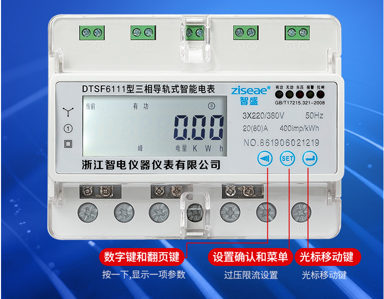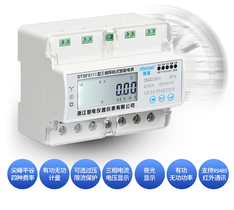 三相導軌式多費率電能表DTSF6111-7系我公司采用微電子技術計量電能,采用進口集成電路,應用數(shù)字采樣處理技術及SMT工藝等先進技術研制開發(fā)的電子式電能表。能直測量電能計量中正向有功電能,7位LCD顯示器顯示有功用電量,具有可靠性好、體積小、重量輕、外表美觀、工藝先進、35mmDIN標準導軌式安裝等特點:并具有良好的抗電磁干擾、低自耗節(jié)電、精度高、高過載、穩(wěn)定性強、防竊電、壽命長,液晶屏幕上可顯示當前總電量,無功電量,尖峰平谷的電量,電流,電壓,功率,功率因素,頻率,支持RS485 DL/645--2007或MODBUS通訊規(guī)約。